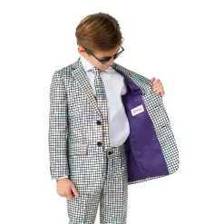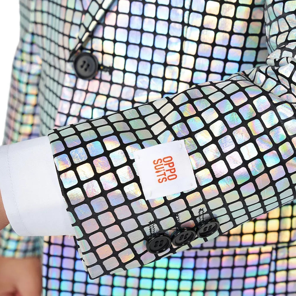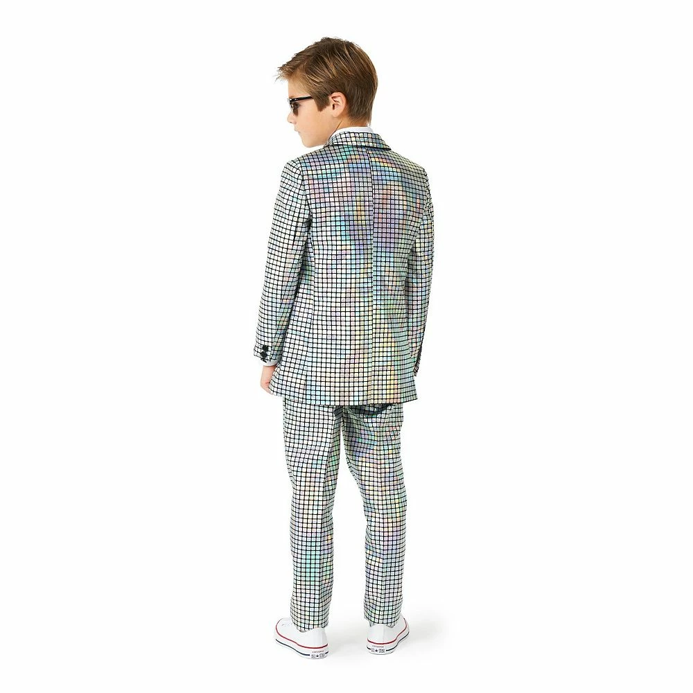 Burn baby burn… Disco inferno! This dazzling mirror patches suit will make your little guy an absolute crowd favorite. Wear it to the next school dance or family wedding and everyone will keep dancing around him all night long.