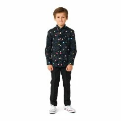 Does your little man like video games, but want to teach him something about the classics? You’re in luck, because with this button-up shirt, you can show your love for the arcade games no matter your age! Furthermore, this shirt is long enough to tuck in his pants and it will stay in there – even while he’s running around – because it’s specially designed to wear in combination with a suit.
