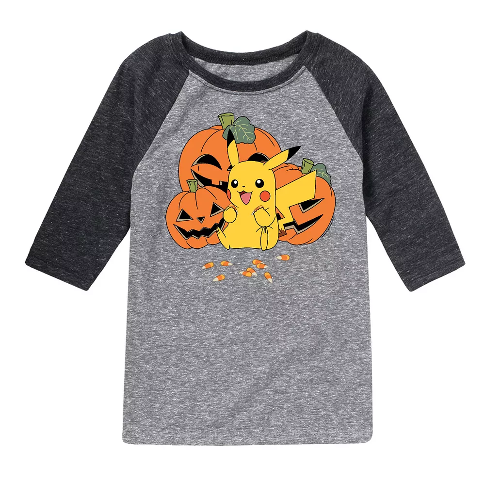 Pika pika! Your pikachu fan will love this cute Pikachu Halloween Pumpkins raglan tee, perfect for the spooky season.