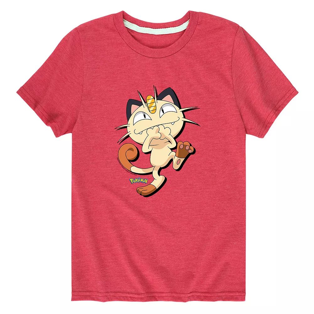 He’ll love wearing this boys’ Pokemon Meowth Shadow Graphic Tee.