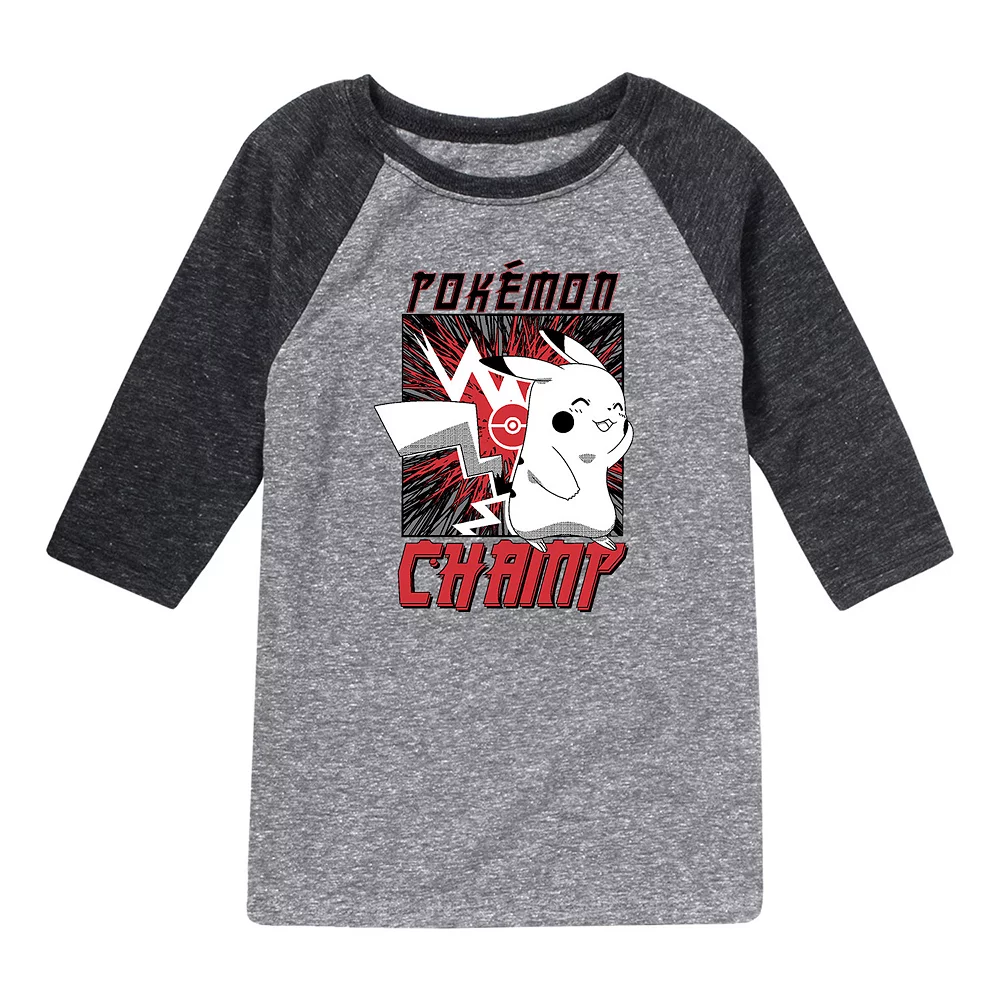Help your pokemon master chatch them all with this boys’ Pokemon Pikachu champ raglan tee.