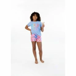 If she’s ready for a peaceful night’s sleep she needs this super fun, extra-soft jersey pajama set. With a funky ‘peace’ slogan comprised of rainbow butterflies and silver glitter details. This set is finished beautifully with a contrasting pair of elasticated rainbow butterfly shorts with a blue ribbon bow detail.