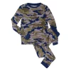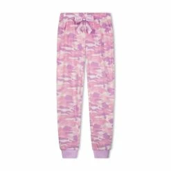 Keep it simple with nothing but good vibes with this cozy two-piece pajama set. The thermal long-sleeved t-shirt has a stylish henley neckline and features a simple single glitter button and glow-in-the-dark ‘vibes’ quote. The extra-soft loose-fitting pants, in a Minky fleece fabric, have an all-over purple/pink camouflage pattern and a matching purple waist tie detail. For extra comfort, this set has elastic waist and ankle cuffs.