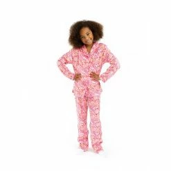 If she loves pink and leopard print she’ll fall head over heels for this super-cozy Minky fleece pajama set. The easy-use button closure run the full length of the long-sleeved collared sleep shirt in a vivid pink all-over leopard print. With the matching loose-fit pants, she will stay comfy and snug all night long with the elastic waist and delicate piping details.