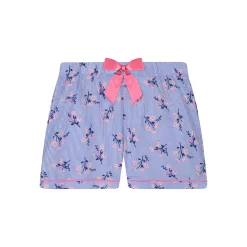 Pinstripes are always in fashion and this super-soft, classic shirt-style jersey pajama set proves it! With a glittered button-down front opening, contrasting ribbon bow detail and piping. Not to forget an awesome hair scrunchie in a matching pinstripe and floral print to keep her cool and comfy all summer long.