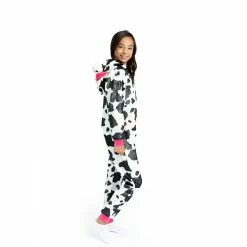 They’ll be milking every inch of fun out of bedtime with this super-fun cow-style hooded sleeper. The bold all-over shimmer cow print contrasts with the bright pink cuff and detail accents. Made from a super-cozy flannel fleece they’ll love the bold 3D horn and ear details on the cow character hoodie. The easy-use zipper is perfect for little hands.