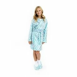 Whether it’s for adding an extra layer of warmth or for throwing on after a shower, this cozy flannel fleece robe is perfect. She’ll love the purple and green mermaid scale foil print and the easy-to-use waist tie and an extra snug shawl collar. For extra style, this robe comes with a matching pair of sherpa-lined slippers that feature anti-slip soils for extra-cozy toes.
