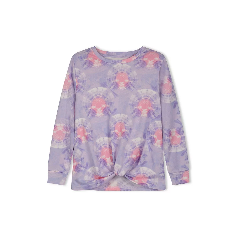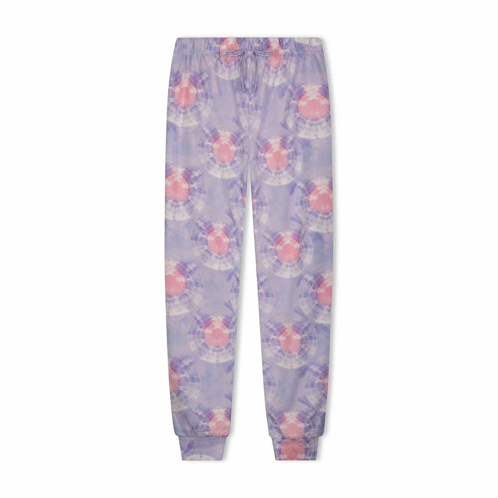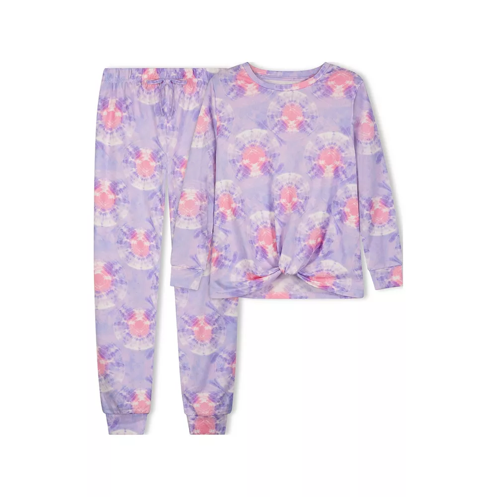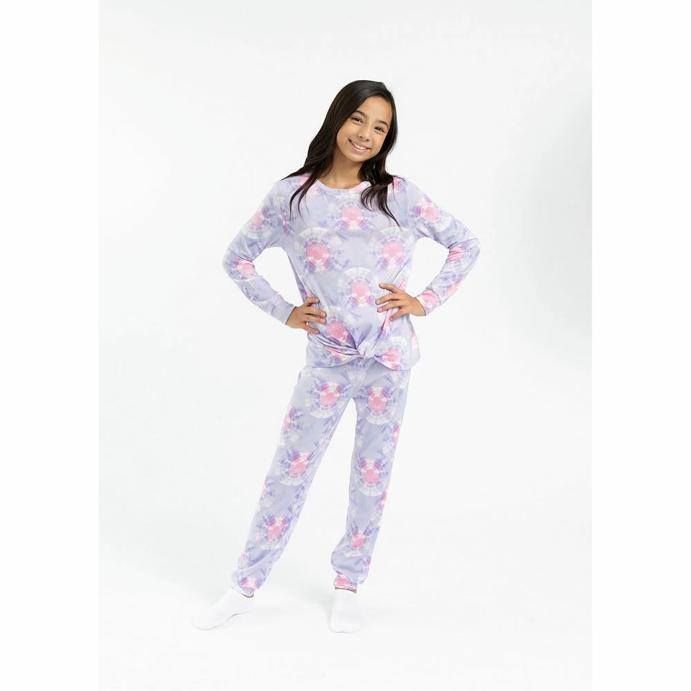 This retro-inspired, tie-dye two-piece pajama set will have her snoozing in rocking sixties style. Made from a breathable and cozy 100% hacci fabric, the long-sleeved top features a funky gathered waist detail. The matching and loose-fitting pants have an elastic waist and cuffs for extra comfort. For a stylish finish, she’ll love the mock waist tie detail.