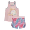 Unicorn lovers assemble! No matter who she is, she’s bound to fall in love with our unicorn floral, super-soft, 2-piece pajama set. Featuring a dainty metallic unicorn motif on the breast and a contrasting pair of elasticated ditsy floral shorts with fun flutter cuffs and a salmon pink ribbon bow detail on the waistband.