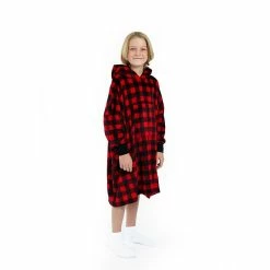 Staying warm just got cool with our super-cozy fleece blanket hoodie. In a bold and bright red plaid print, this wearable blanket has a super soft sherpa inner liner, perfect for keeping her warm and toasty. The outer fabric is soft to the touch and features a handy kangaroo pocket for keeping her special things close all day. The long-line shape, elastic cuffs, and cozy hoodie keep in the warmth.
